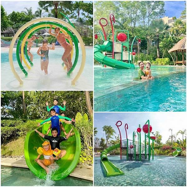 這個度假勝地的游泳池是超級大的,可以讓你盡情暢游,感受水的清涼和舒適。而獨具一格的「水上遊樂區」也是非常值得一提的!你可以在這裡盡情嬉戲,享受陽光和快樂。想要玩水槍嗎?沒問題!想要滑水道嗎?也可以!這個游泳池遊樂區可謂是小孩和大人的天堂,絕對讓你愛不釋手!